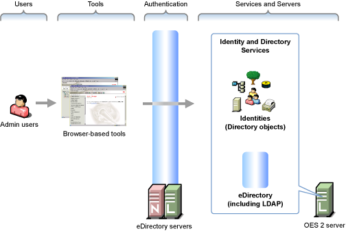 eDirectory is designed to provide easy, powerful, and flexible management of network resources (including eDirectory itself) in ways that no other directory service can match. You can administer eDirectory through the same browser-based tools on both OES and NetWare.