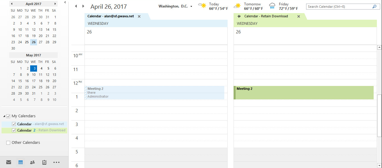 Retain archives calendar items and it can be shown side-by-side to your Exchange calendar.