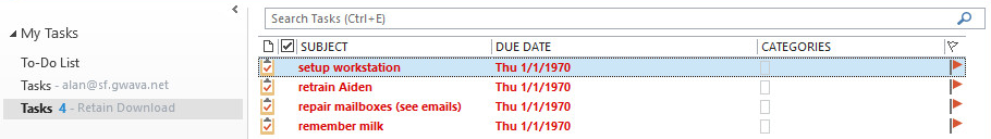 Select the Retain Download Task list to see items stored in Retain.