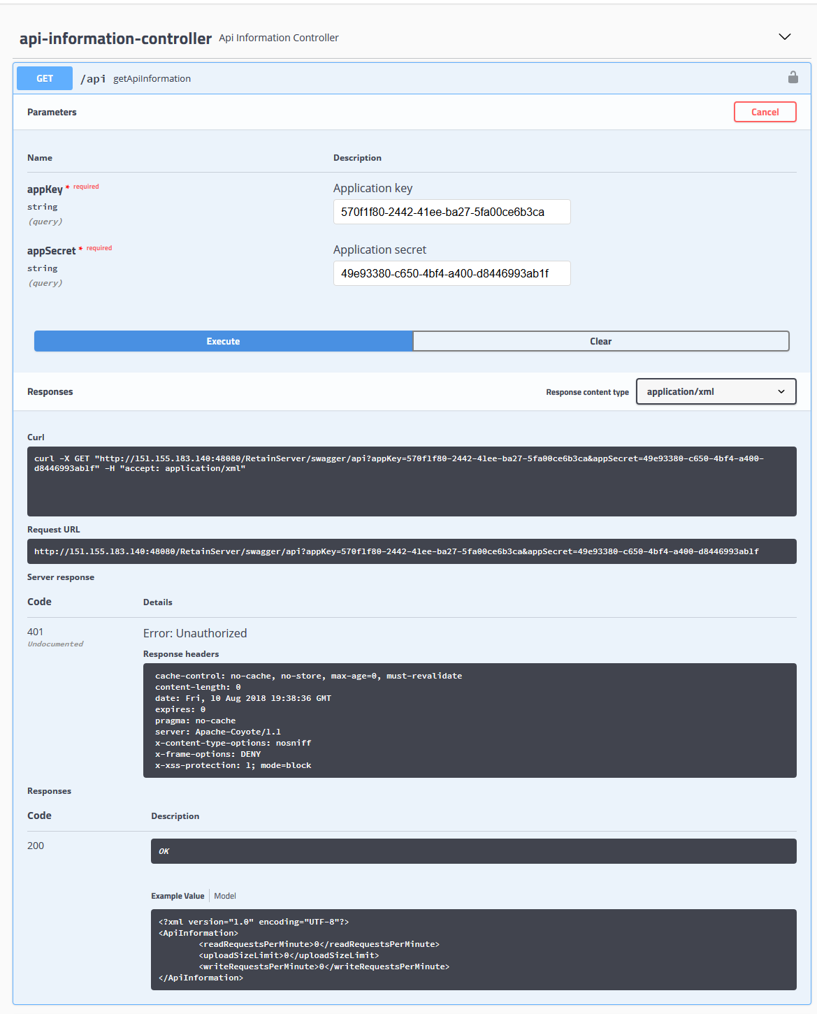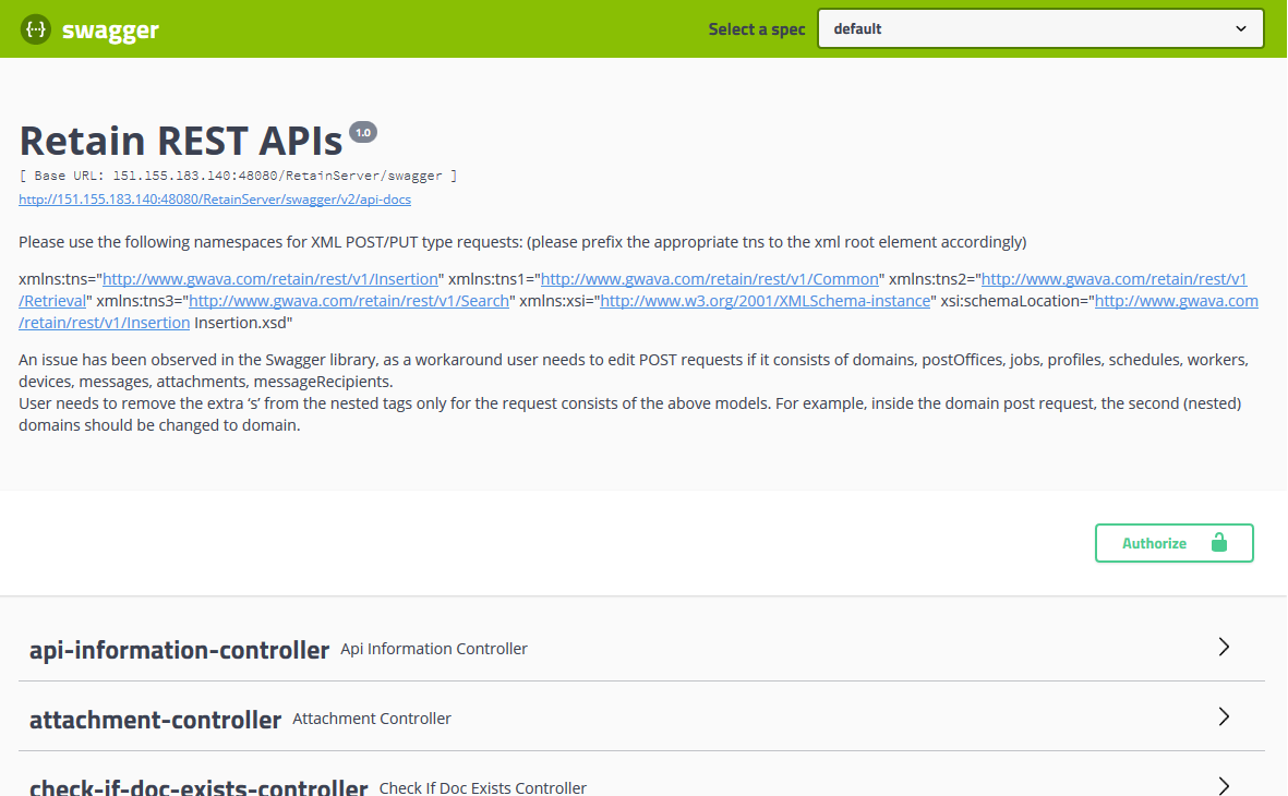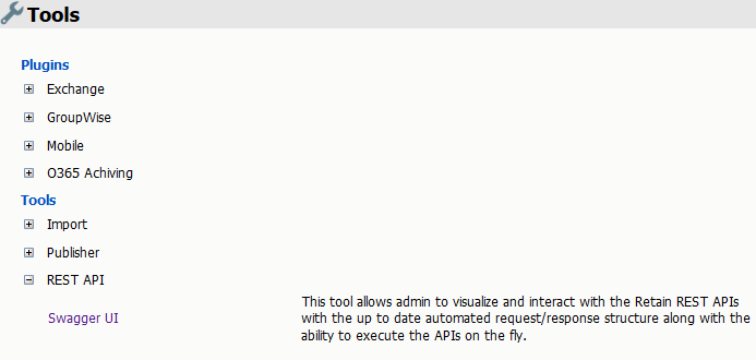 Swagger is a developer user interface for Retain’s REST API.