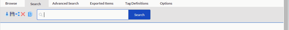 The Search tab allows for management of searches. This is accomplished by Saving searches for later use. These searches can then be shared with others, loaded later, removed when no longer desired, and trimmed to remove duplicate data.