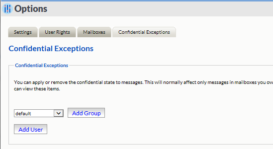 When a user marks a message as ‘Confidential’ in the archive, the message becomes invisible to all except administrators who have been given the confidential right, or any user which is specified in the exception list.