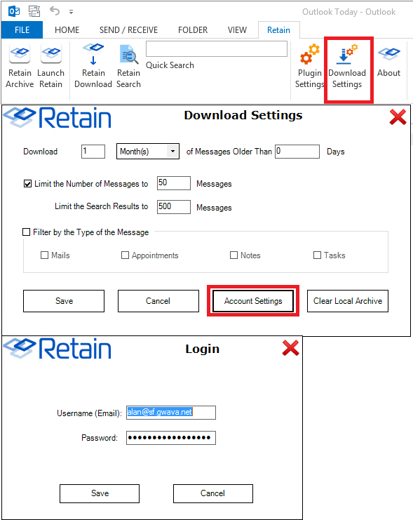 Retain Download: This allows the plugin to add the Retain Download folders to Outlook.