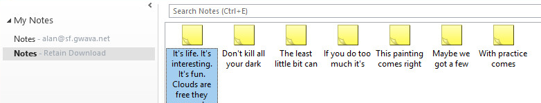 Select the Retain Download Notes list to see items stored in Retain.