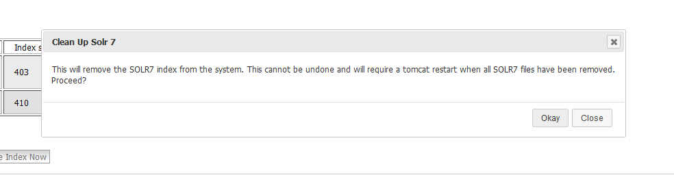 When you are ready, click Clean up Solr 7 and click Okay in the prompt.
