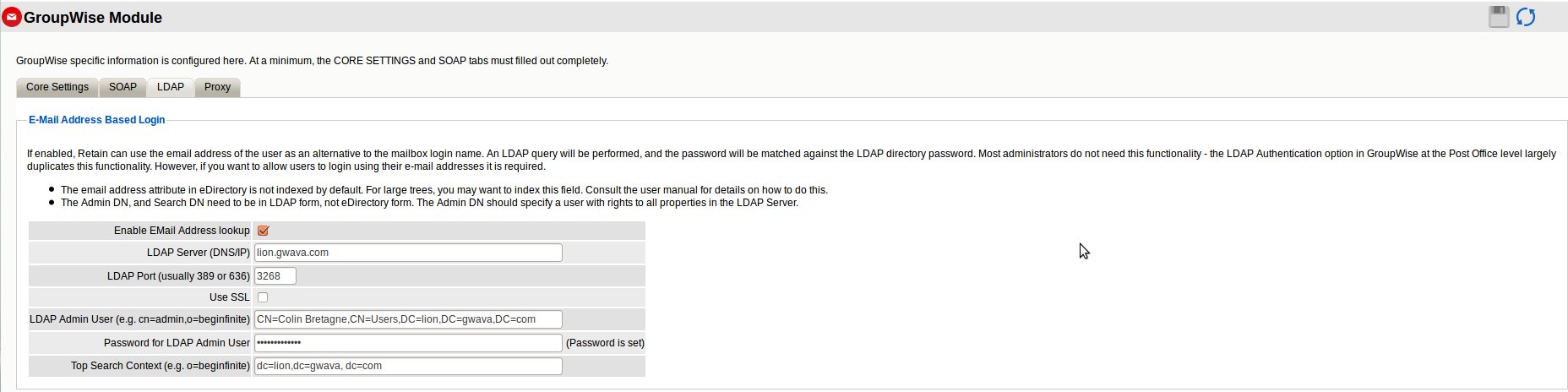 Path: Retain Server Manager > Configuration > Module Configuration > GroupWise-Configure > LDAP