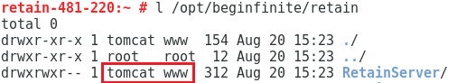 After installing the Retain server, determine the user and group that Retain uses to access the file system by opening a terminal prompt on the Retain server and entering the following command, which is a lower-case L: