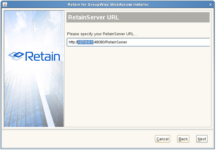 6. Specify the Retain Server URL. An open connection to the Retain Server is required for the plugin to work.