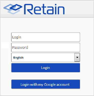 If Retain has been configured with OpenId credentials, the login page will display an option to login with Google credentials. If a user is currently logged-in to their Gmail account, simply clicking the "Login with my Google account" button will automatically log them into Retain.