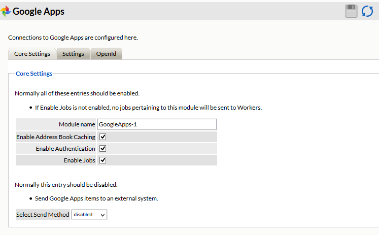 Address book caching must be enabled to gather and maintain an updated list of users. Authentication is used to allow access to the Retain message store for users based on their existing Gmail account login. If the Enable Jobs option is not enabled, no jobs may be completed with the Google Apps module.