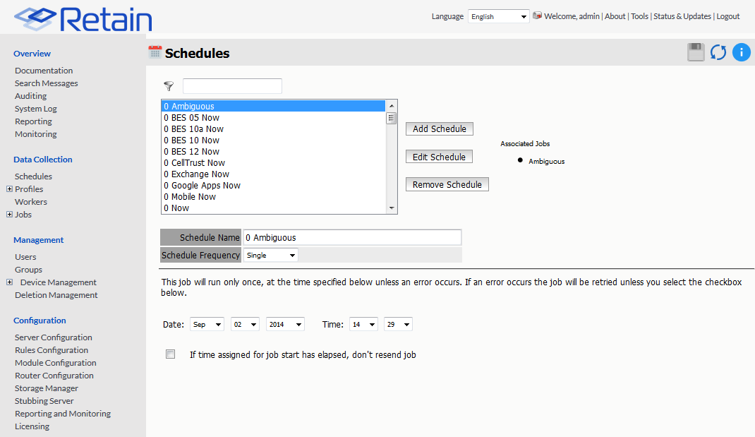A single schedule is used if you want to start a job manually. Starting a Job Manually