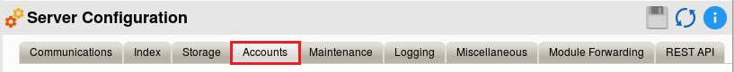 Path: Retain Server Manager > Configuration > Server Configuration > Accounts Tab