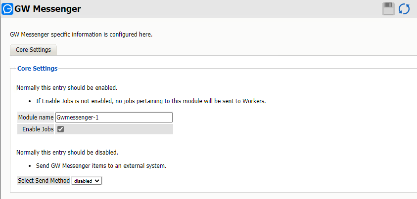 Path: Retain Server Manager > Configuration > Module Configuration > GW Messenger-Configure > Core Settings