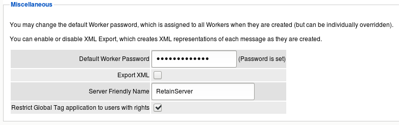 Path: Retain Server Manager > Configuration > Server Configuration > Miscellaneous Tab > Miscellaneous Panel