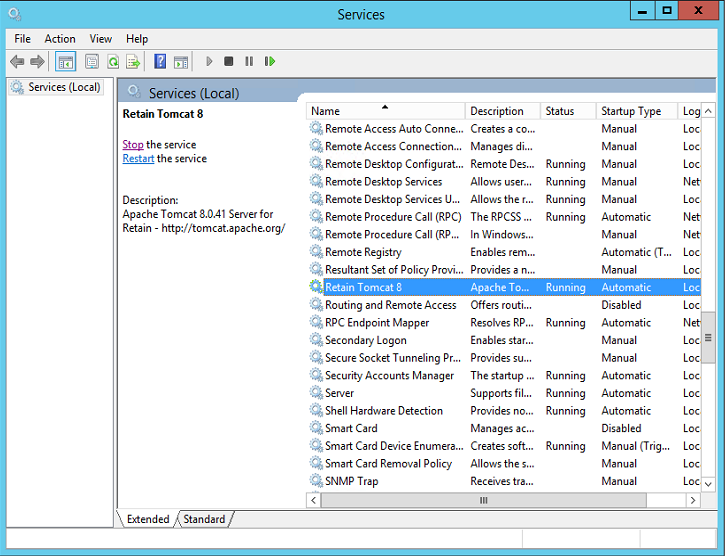 To start, stop, or restart Retain, you must start, stop, or restart Tomcat.