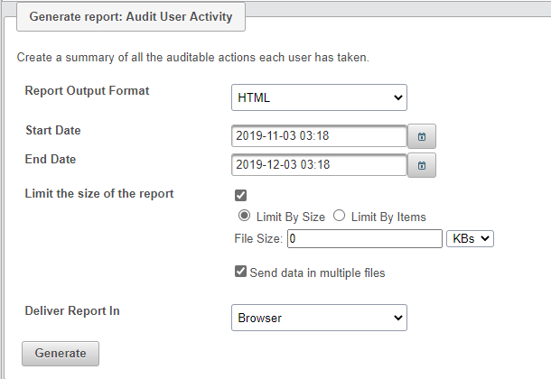 When the settings are as desired select the ‘Generate’ button to create the report.