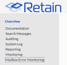 Mailbox Error Monitoring is a function that allows the Administrator to deal with message errors. The email system reports errors to Retain when there is an issue accessing a message. Sometimes these errors are transient and other times they are permanent. This function will help the Administrator determine the next action.