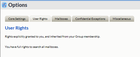 You’re shown the rights you have within Retain on this screen. Available rights may only be changed by a user administrator within the Administration screen.