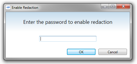 To enable redaction, the archive must first be exported with the redaction option enabled in the publisher, (if the archive was not published with Redaction enabled, the option will appear grayed out), and a redaction password must be entered.
