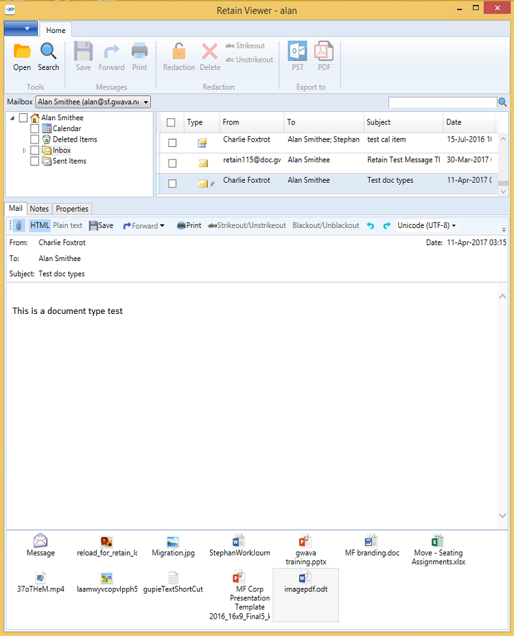 Retain Viewer can export selected files and messages from a mailbox or archive to a PDF or PST archive file.