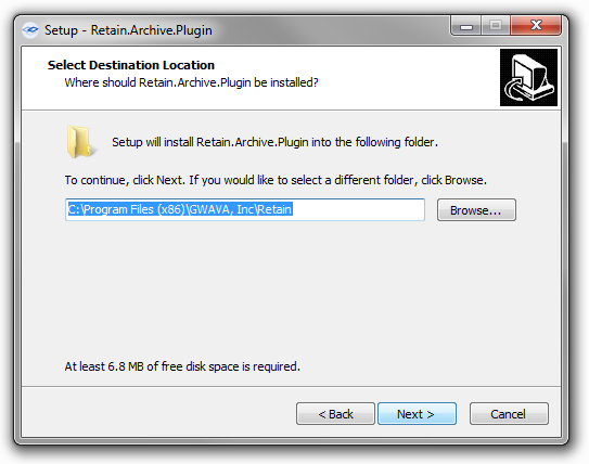 The Retain plugin may be used instead of the GroupWIse Archive. To hide the GroupWise Archive in favor of the Retain Archive, select the box and click 'Next' to continue.