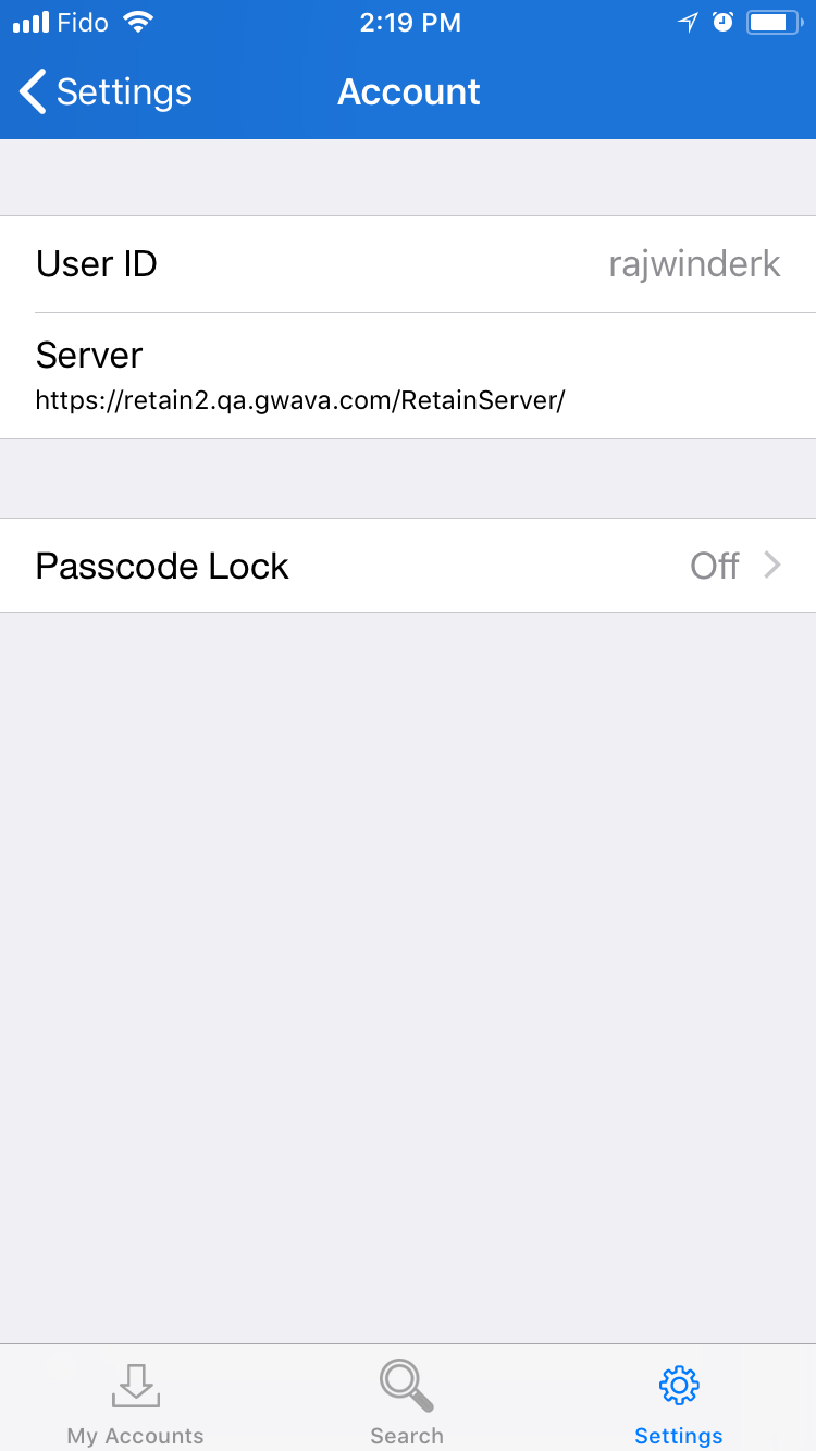 Under the Account section you will be able to see your User ID and the Server the app is connecting to.