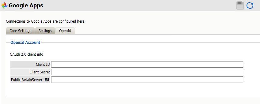 Path: Retain Server Manager > Configuration > Module Configuration > Google Apps-Configure > OpenID