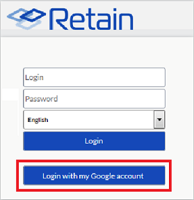 If Retain has been configured with OpenId credentials, the Login Page displays an option to log in with Google credentials. If the user is currently logged-in to their Gmail account, clicking the Login with my Google account button automatically logs them in to Retain.