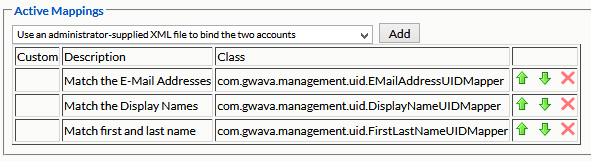 Accounts may be matched via email address, display names, and/or specified by an administrator supplied XML file. We generally recommend a combination of Email Addresses, Display Names and First and Last Names. The mapping will attempt to map by the first criteria and then continue down the list until it finds a match or not.