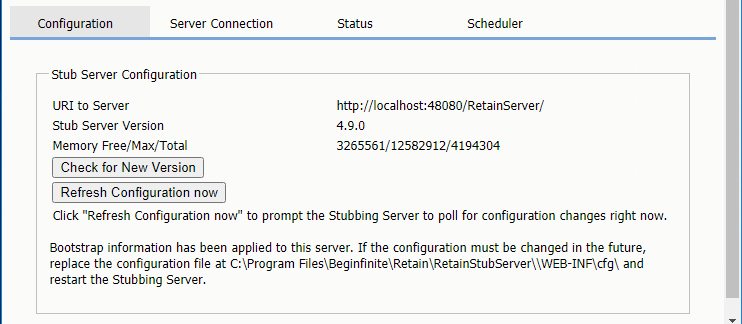 This tab will show you if the Stubbing server was able to connect to the Retain Server.
