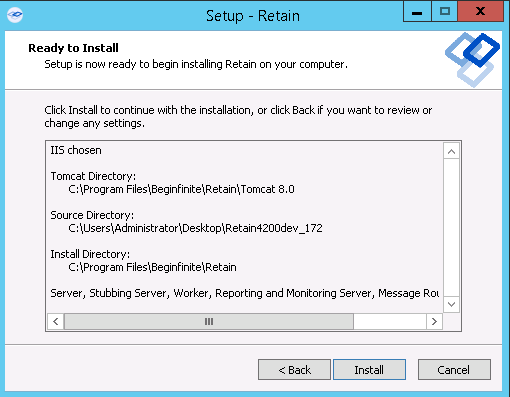 2. Run “RetainInstall.exe”. NOTE: If it already exists, the installer automatically shuts down Tomcat.