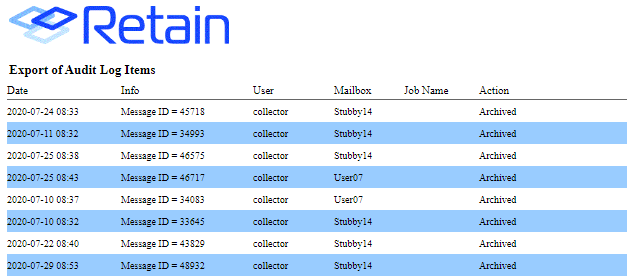 Path: Retain Reporting and Monitoring Server > Report or Schedule Report > Export Audit Table