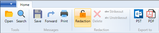 To use the Strikeout, first Redaction must be enabled. After redaction is enabled, the options become active. To Strikeout or Unstrikeout messages in the message list, select the messages by placing a check in the checkbox and then select the ‘Strikeout’, or ‘Unstrikeout’ button from the top bar. To strikeout sections in the body of the message, highlight the desired section and select the ‘Strikeout/Unstrikeout’ button from the view message bar.