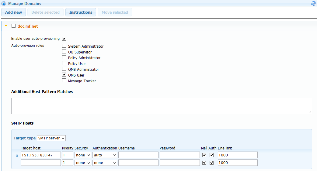 Press “Add new” and name it after the fully qualified domain name of your email server.