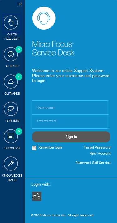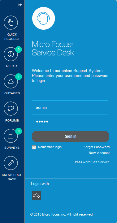To login as a customer at the Micro Focus Service Desk login page: