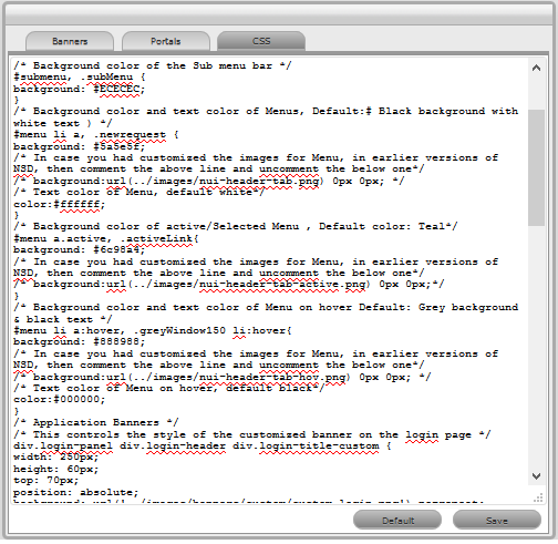 If unwanted changes are made to the system Style Sheets, use the Default button to return the system to the out-of-the-box format.