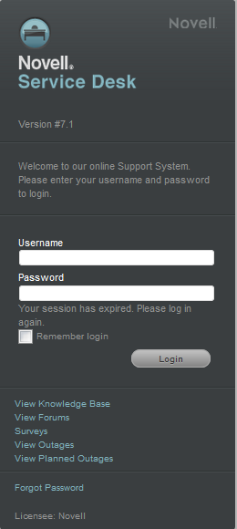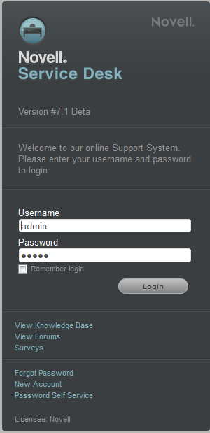 To login as a customer at the Novell Service Desk login page: