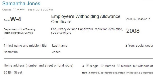 Figure 3-17 Example of a Created Entry for the W-4 Customization