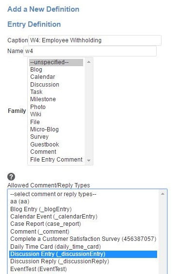 When a user adds a new entry for a discussion folder, the person sees this custom portion of the form: