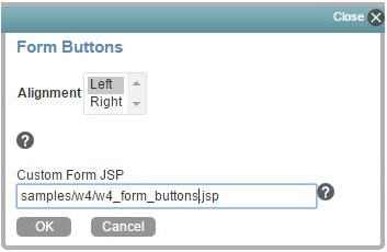NOTE:Be sure to add the path to the filenames specified in the previous graphic. For example, the correct path for the buttons file is samples/w4/w4_form_buttons.jsp.