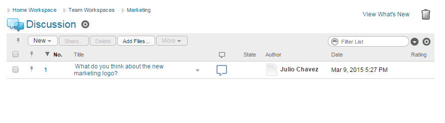 The view for a Discussion folder is what users see when they access the folder. It looks like this: