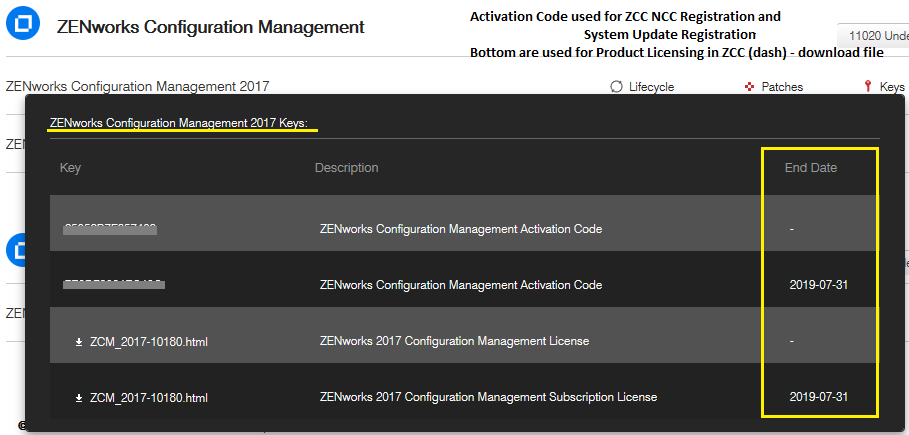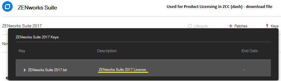 If you do not have the suite license, then the HTML file includes the ZCM Product License key. The downloaded TXT or HTML file includes your product license codes.
