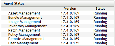 To view the status and version of the features running on the Agent, in the Technician Application click Agent. Scroll down to view the Agent Status panel.