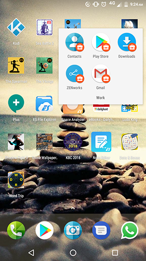 8. After your device is enrolled, a Badge icon attached to the ZENworks Agent App icon and other system apps will help differentiate work apps from personal apps.