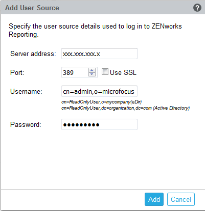 After configuration, if the credentials of this user is modified, ZENworks Reporting server will not be able to access the LDAP directory to authenticate login attempts. You must reconfigure ZENworks Reporting with the new credentials.