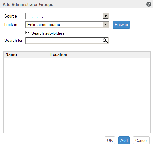• Add: Click Add to add groups from a configured User Source. These groups will be listed below after they are configured.