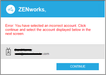 As a ZENworks administrator, you can customize the error message that is displayed in the Azure AD login screen when you select different users in ZENworks and Microsoft.