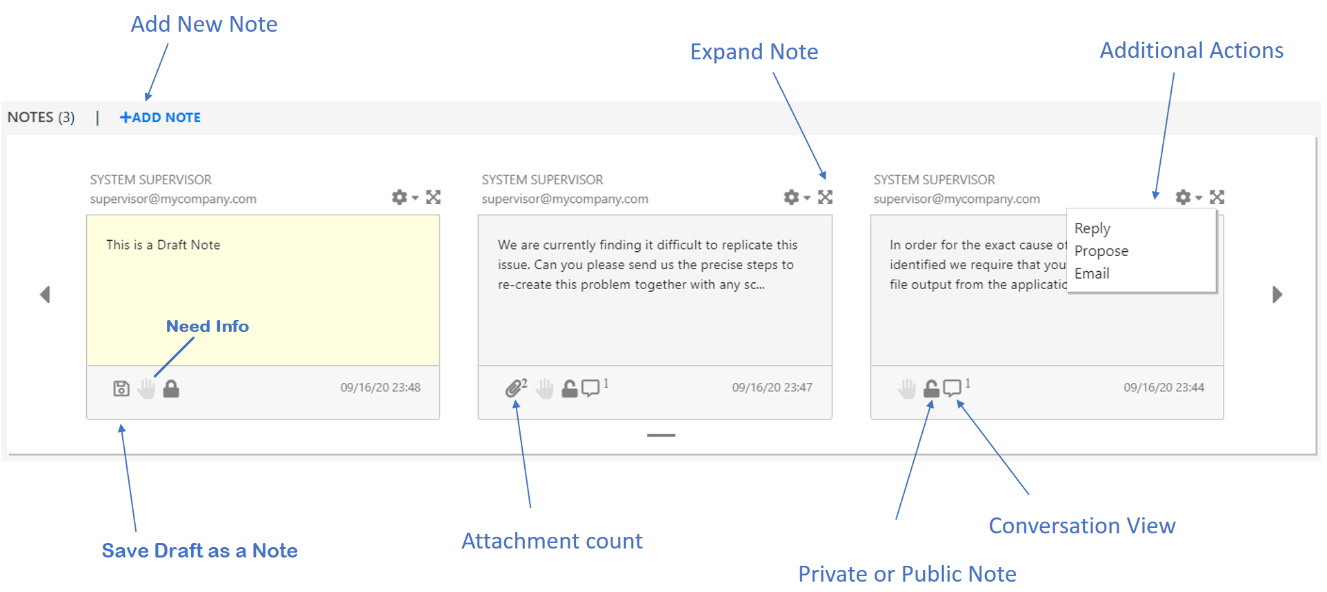 For more information on Adding Note, see the Section 2.7.5, Add Note section. |