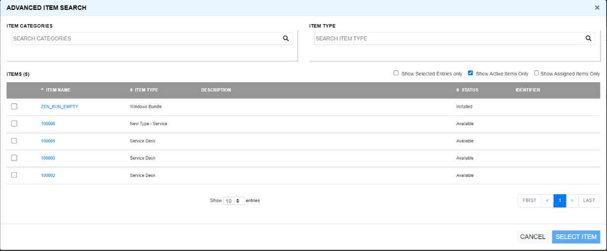 to view Advanced Item Search. In the Advanced Item Search pop-up, you can search items based on various parameters.