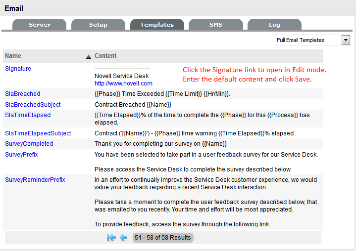 Email Signatures that are applied at the base of all emails sent by the system are customized within the Full Email Templates filter of the Setup>Email>Templates tab. These can also be customized on a per Team basis using the Localization functionality.